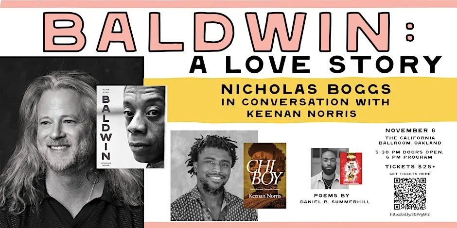 I’ll be in conversation with Nicholas Boggs, author of Baldwin: A Love Story, at the California Ballroom in downtown Oakland on Nov. 6 at 6PM.